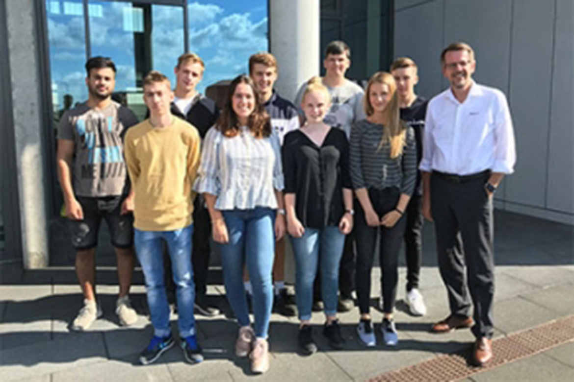 Geschäftsführer Frank Schnabel mit den neun Nachwuchskräften